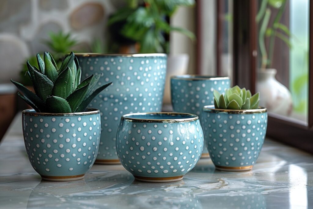 - Mug à pois : Les mugs à pois sont incontournables pour apporter une touche de gaieté à votre service à café ou thé. Ils sont parfaits pour colorer vos matinées et dynamiser votre espace petit-déjeuner.